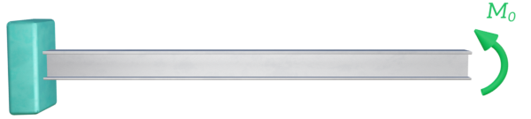 Consider a beam of length L, fully fixed at one end and subjected to a constant bending moment $M_0$ at the free end.